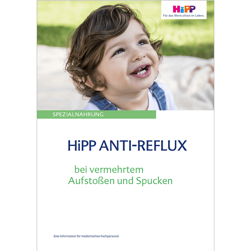 HiPP ANTI-REFLUX Spezialnahrung vermindert den Nahrungsrückfluss in die Speiseröhre (Reflux) und damit das Aufstoßen und Spucken