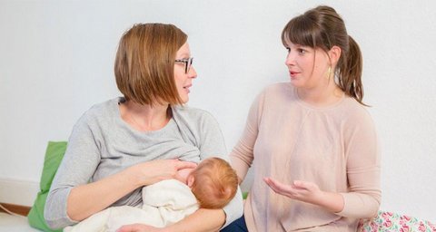 Beim Ausprobieren der vielen Tragemöglichkeiten unterstützen Hebammen die Familien und beraten sie. Der wichtigste Hinweis sollte sein...