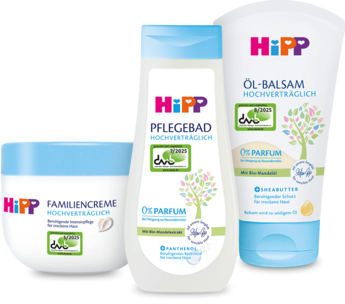 Die Haut von Säuglingen erfordert eine besonders milde Pflege, die sich auf essenzielle Inhaltsstoffe beschränkt und frei von überflüssigen Zusätzen ist. Dies ist wichtig, um das natürliche Gleichgewicht der Haut zu bewahren. Ein Allergierisiko stellen unter anderem ätherische Öle oder auch bestimmte Konservierungsstoffe, wie Parabene dar. Um die Haut möglichst wenig zu belasten, sollten Produkte zudem auf PEG-Emulgatoren, Alkohol (Ethanol) und Seifen (greifen Säureschutzmantel an) verzichten. Pflegeprodukte für empfindliche und trockene Haut enthalten idealerweise natürliche und zugleich pflegende Inhaltsstoffe, wie beispielsweise Mandelöl oder Sheabutter sowie feuchtigkeitsversorgende wie Glycerin. Empfehlenswert ist es zudem auf Produkte mit verlässlichen Qualitätssiegeln zu achten, wie dem des Deutschen Allergieund Asthmabundes (DAAB), da diese strengen Anforderungen an die Auswahl und Verträglichkeit der Inhaltsstoffe erfüllt.